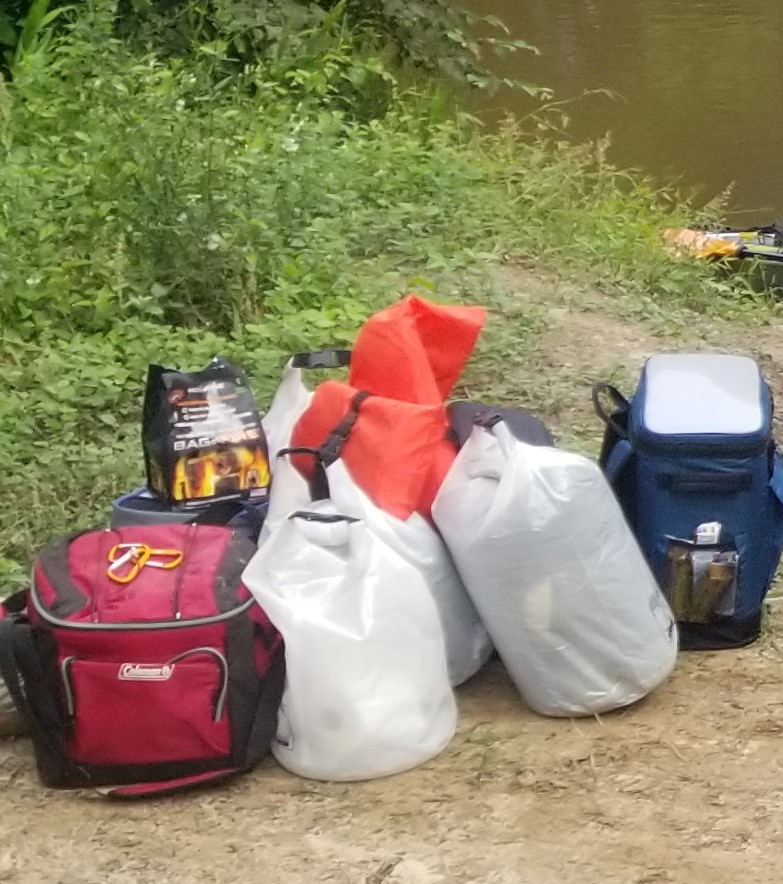 I like to pack my stuff in smaller dry bags just because my kayak has a hatch in the front and you can stuff a lot more in it with smaller bags, even though it has a hatch I still like to use dry bags with most of my stuff. I also have some larger dry bags I will use for bigger items and will strap them dawn in the back of the kayak with the carabiners.